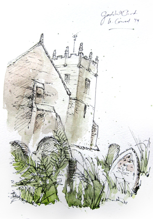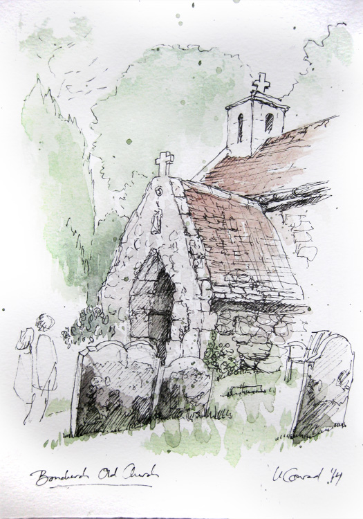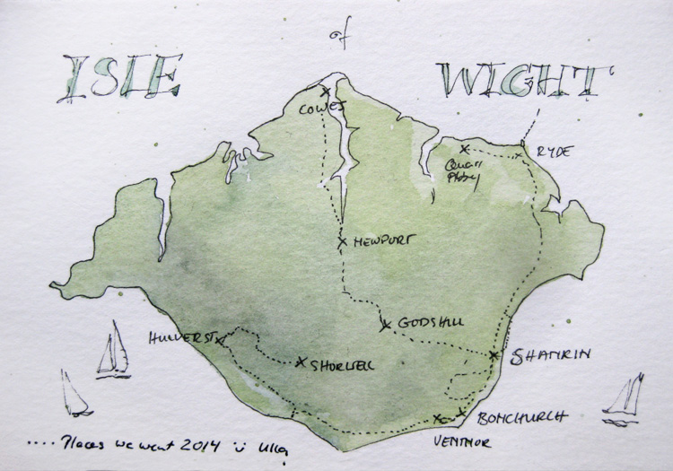 I august 2014 var jeg så heldig at holde en uges vandre-ferie på den sydengelske ø Isle of Wight. Øen ligger bare 20 min færgefart fra sydkysten (Portsmouth) og er ca på størrelse med Bornholm. Specielt de gamle kirker på øen Isle of Wight har været helt fortryllende, ligesom tiden stod stille. Kirken i landsbyen Bonchurch, det sidste motiv, er fra år 1072… Herfra et par akvareller.